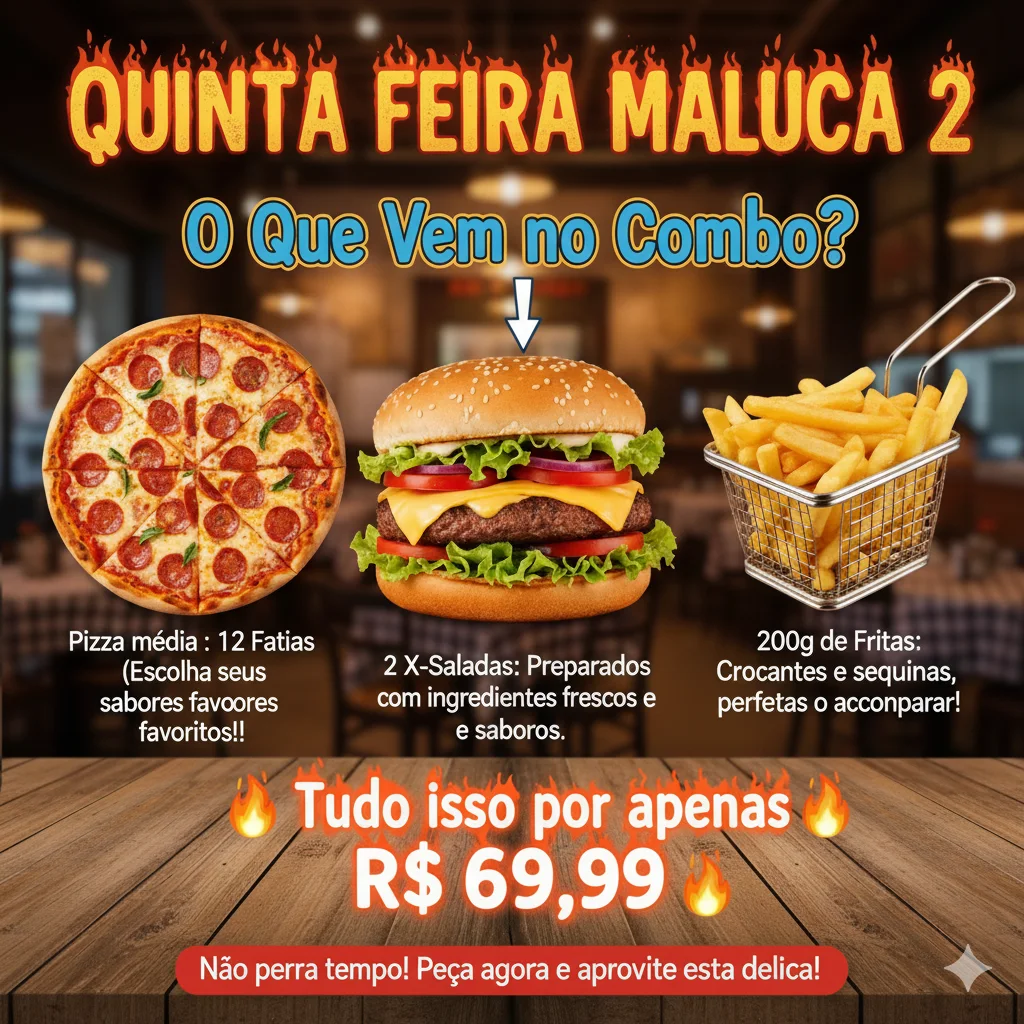 Quinta maluca 1 - PIZZA GRANDE + 2 X-Salada + 200g fritas