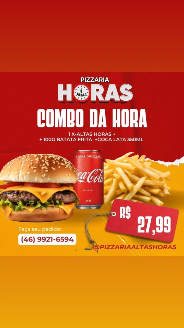 1- X-ALTAS HORAS + 100G BATATA+ COCA COLA LATA 350ML